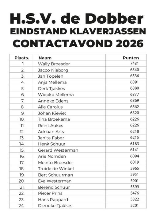 TIP: Waarvan de e-mailadressen bekend waren zijn per mail verstuurd!